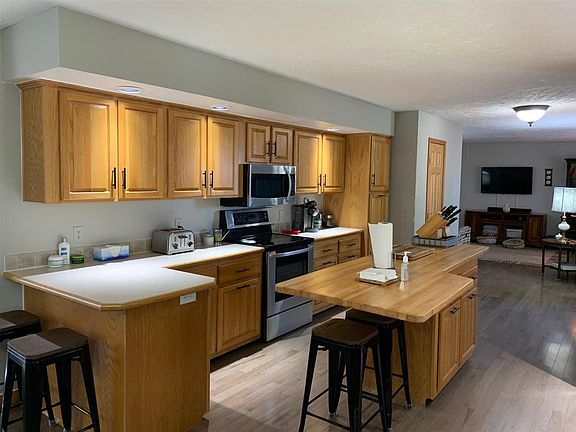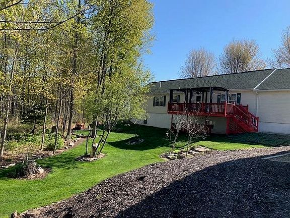 Geothermal heating and cooling system installed 2005 Security camera New wood flooring 2020 New tile in laundry room and bathrooms installed in 2020 Double gazebo on back deck with ceiling fan Sprinkler system 33 x 36 pole barn with concrete floor, electric and wii fi. All appliances, refrigerator 2 yrs old, dishwasher 1 year old, LG front loading efficient washer and dryer. Two kitchen pantries, Fenced in front yard. Landscaped.