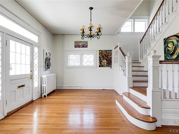 This classic home has great flow into its large rooms. A large foyer welcomes you to enjoy original trim, charm, and plenty of character. To the right of the foyer is the front Living Room and attached Dining Room both with working gas fireplaces. There is a half bath, separate laundry room, and butler's pantry on the first floor next to the EXTRA large kitchen with gas fireplace that makes entertaining a joy. A rear, well-lit studio room off the kitchen is a wonderfully lit space for an office or play room. There are two sets of stairs leading to the basement: One to the unfinished section and the other lead to a finished studio apartment that has a full bathroom, Living Room, and Bedroom. From the kitchen, a screened in porch awaits visitors to enjoy beverages and to view bunnies in the large backyard with a shed and lots of grass and mature greenery.