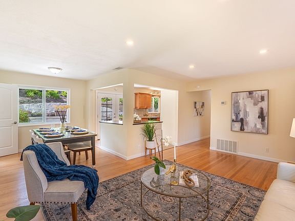 Welcome home to this inviting 3 bedroom, 2 bath home in Lafayette's highly sought after Burton Valley neighborhood. Set on a quiet, family friendly street. Step into the bright living room featuring a brick fireplace, perfect for cozy evenings. The recently refinished hardwood floors and fresh interior paint provide a clean, updated feel throughout. French doors off the kitchen open directly to the sunny backyard, creating effortless indoor/outdoor flow for entertaining or everyday relaxation. This home includes a spacious two car garage with built-in shelving for ample storage. With top rated schools, a prime location.