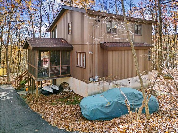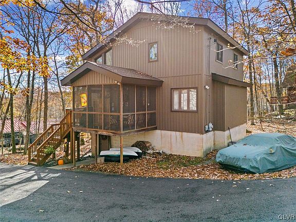 SPACIOUS LAKE-COMMUNITY HOME IN THE POCONO MOUNTAINS! This 3 bed, 2 bath home has it all! We can start w/an ''Open Concept'' of DiningRoom, Kitchen, FamilyRoom & Loft, Wood-Burning Fireplace, Lots of Windows, Skylight & 2 New Sets of Sliders for Tons of Natural Light, Screened-in Porch & a Wrap-Around Deck w/a beautiful view. If that's not enough, there's a 1st floor Master Suite w/a Gorgeous Renovated Bathroom...Tiled Walk-in Shower & Stand-Alone Tub. The 2nd level has 2 bedrooms, a full bathroom w/tub & Loft which is exposed to the 1st floor by a vaulted ceiling. Large Walk-out lower level w/sliders is FULL OF POSSIBILITIES (such as a Rec Room w/Bar continued onto a back patio for entertaining) just bring your imagination! Amenities: security gate,beach,lake,gym,tennis courts,skiing etc