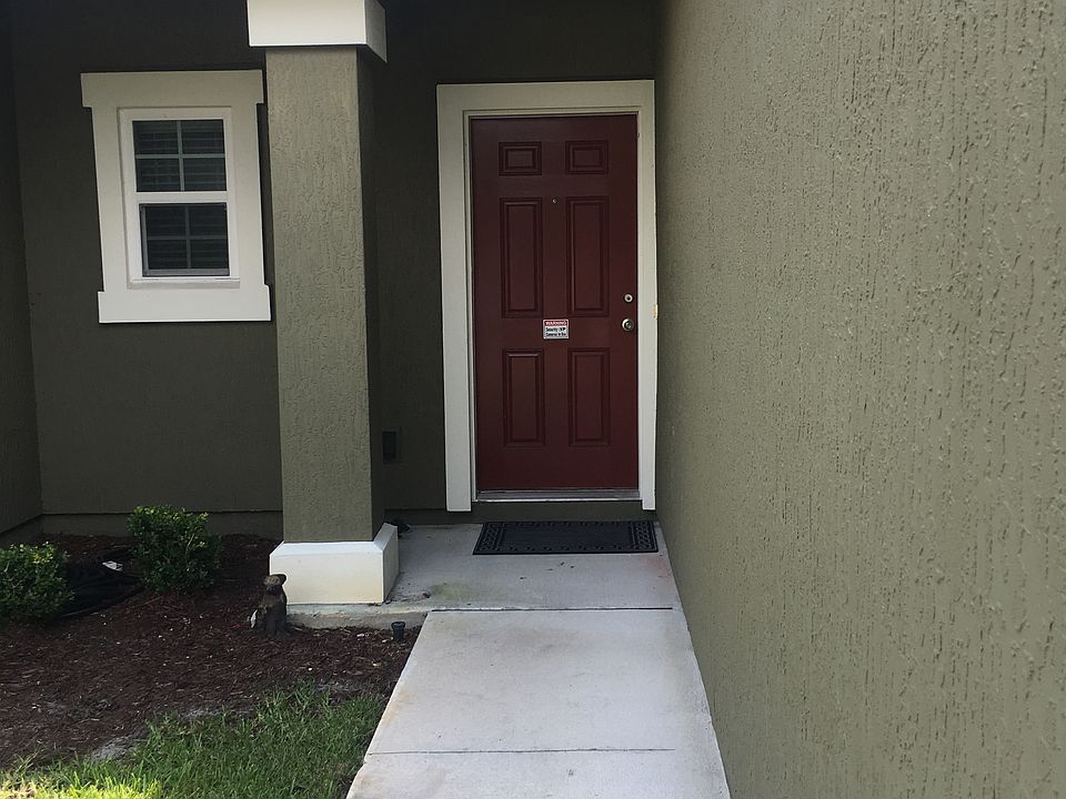 Three bedrooms two and one half bathrooms. 2 Bedrooms 1 full bath upstairs: Master BR downstairs W/ master bath and walk in closet. Half bath downstairs. Added attic storage w/ attic ladder. Professional garage storage Pull out kitchen cabinet drawers Screened porch w/ ceiling fan and extended block patio. Ceiling fans in every room. Backsplash in kitchen. Cupboards in the laundry room. Two car garage. Garage and patio floors sealed and painted. Custom blinds. All appliances, stove, microwave, refrigerator, dishwasher, washer and dryer all included. Wide open backyard Can be sold with some furnishings Up stairs bedrooms never been slept in! Call 561-508-1010 No realtors fee! FSBO