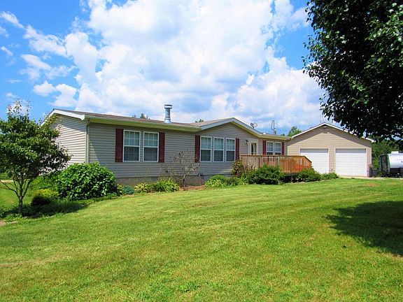 If you are looking for a farm, this is the property for you!! This 12 acre farm property features a 1560 sq. ft. manufactured home on a permanent foundation with 3 bedrooms & 2 baths, a heated/cooled 30 x 40 detached garage with additional storage above and a 10ft off hang, a pole barn, several outbuildings, a chicken coup and a 1/2 acre stocked pond. The home features crown molding throughout, 6'' exterior walls and double pane windows. Of the 12 acres about 2-3 are wooded. You won't find any barb wire on this property. Front pasture has no climb horse fence and the other two fields are fenced and cross fenced. There are fruit bearing fruit trees as well as grape vines on the property. Call today to schedule a showing, this home is a must see!!!