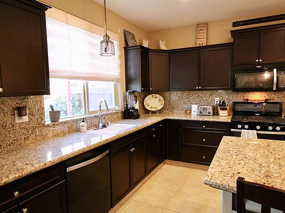 Entertainer's Delight! You will love this 4 bed, 3.5 bath, 2245 square foot home in Clovis East School District. As you enter, you will appreciate the open concept of the living room, dining room and kitchen. The kitchen features granite countertops, a large working island, pendant lighting, and walk-in pantry. Completing the downstairs, is an isolated bedroom and bathroom, plus a half guest bath, and laundry room off the garage. Upstairs features three bedrooms, including the master suite with soaking tub, dual vanities, fully enclosed glass shower, and large walk-in closet. Also upstairs there is an office space in the loft with a built-in desk. Surround sound downstairs and canned lighting throughout. The large lot is an entertainers delight featuring an outdoor fireplace, additional cooking island, covered patio, synthetic grass, outdoor shed, and a fenced in area perfect for a dog run or a garden area.