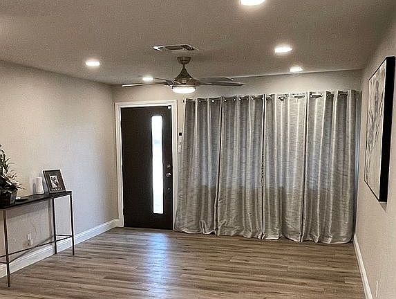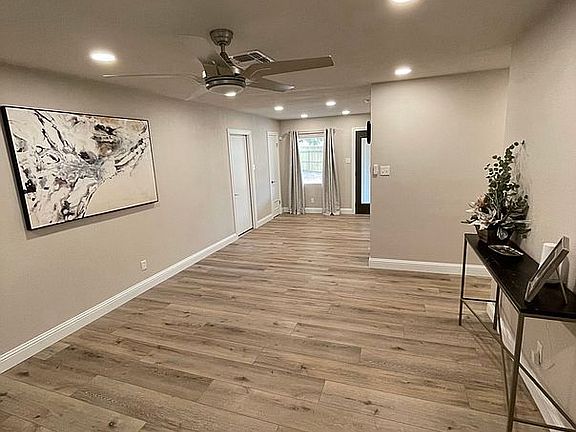 The Complete Makeover consists of new windows, high end seamless flooring and recessed LED lighting throughout the home. Kitchen is adorned with new cabinets, leather feel quartzite stone counters, touch-less faucet, Pantry and Stainless Steel appliances. The bathrooms have new cabinets, lighted mirrors, leather feel granite, upgraded fixtures & a deep soaker tub. A new stackable Samsung washer/dryer has been installed along with an alarm system. The garage has been converted into a 4th bedroom or den. When you want a break from being inside, you can sit under the large covered patio and enjoy those peaceful evenings.