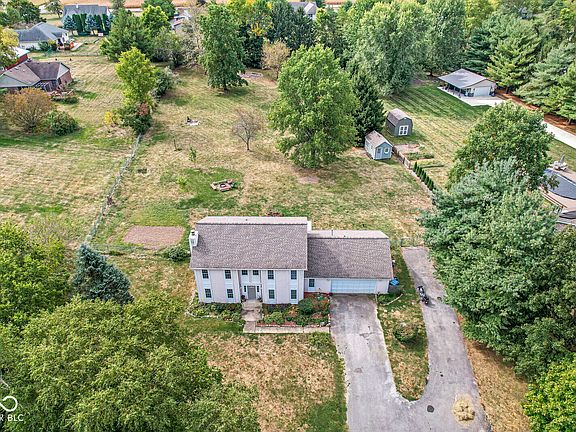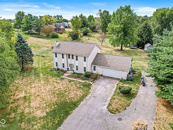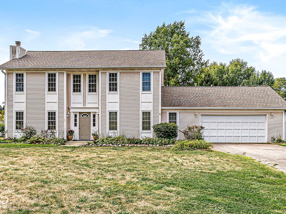 If you looking for a home with land for your chickens goats, this is the home for you! Come check out this wonderful opportunity in Greenfield! This property sits on 1.6 acres and offers tons of privacy. The living room has a 2-story ceiling that brings in lots of natural sunlight and includes a fireplace. This property features a formal dining room overlooking the backyard, a large eat-in kitchen with stainless steel appliances and tons of cabinet / counter space, and a main level master bedroom. The other bedrooms are upstairs along with the 2nd full bath. The backyard includes a storage sheds, a fence, and a covered patio! This is a great home and provides easy access to Fortville, downtown Greenfield and Pendleton!