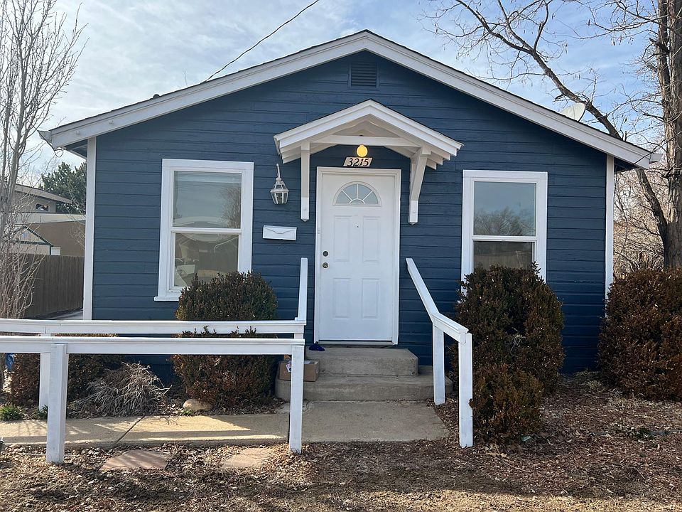 Excellent central Wheat Ridge location just a short distance to West Highlands, Edgewater/Sloan's Lake & downtown Wheat Ridge restaurants/shops. On the RTD line too. Quaint and adorable farmhouse, don't let the square footage fool you! Decent sized living room, space for a couch, side chairs & a home office. Southern facing kitchen has plenty of elbow room, plus will easily hold a 4-chaired table. Kitchen adjoins to the ONLY bedroom, that will easily hold a queen sized bed. Also has built-ins, small walk-in closet and attached full bathroom. Downstairs is a bonus, easily will hold an extra office or media room. Laundry space and storage here too. New carpet, paint and refinished floors. A few finishing touches being completed (lighting, window coverings, mirror in bathroom, new side door, screen door and closet door). Yard is NOT FENCED and it is a busier street, so likely not safe for a dog. New tenant must allow access to storage garage in the back for landlord/tenant's who lease the garage. Yard is not great, still a work in progress. This is a one bedroom house, the basement will not be sleeping quarters. Landlord pays for water and will mow. Tenant must pay gas, electric, trash, cable/internet (previous tenant's have had Xfinity/Comcast) and renter's insurance. Snow removal by tenant. One year lease minimum. Deposit is same as rent. Must have previous renter history, or mortgage history. One of the owner's is a licensed real estate agent.