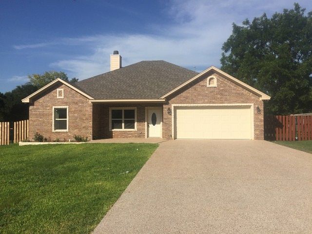 New Construction: 3/2/2 Close to Lake Waco and Shopping. Half Acre lot with large backyard, custom kitchen cabinets w/ glass accent & ceramic tiled back-splash, gas stove, granite & crown molding throughout, vaulted ceiling living/dining, wood burning fireplace, large rooms & closets, master ensuite has dual vanity and large tiled shower & walk-in closet, separate utility room with sink & cabinets, garage has additional storage space with shelving.
