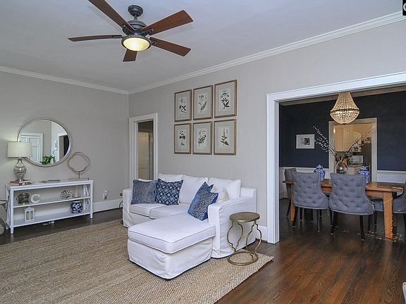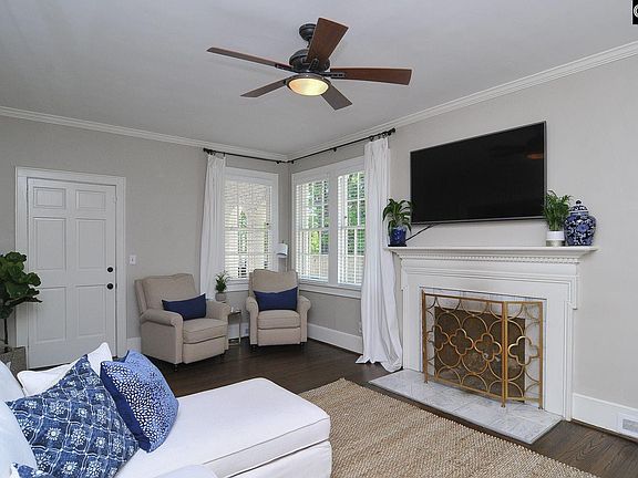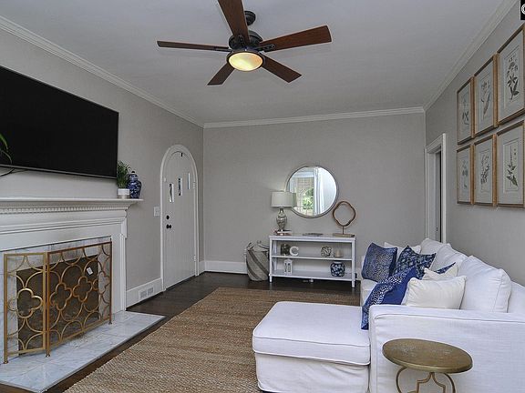 - Living Room: Fireplace, Floors-Hardwood, Molding, Ceiling Fan