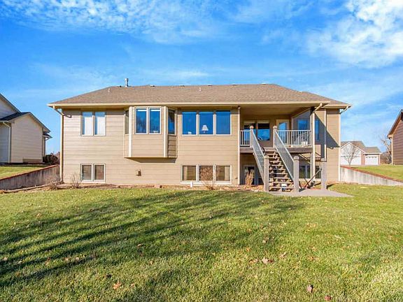 It's one of the lowest priced homes in Fox Ridge Addition at this time!!! Beautiful hardwood floors - lots of windows with custom window treatments. Covered patio and covered deck overlooks lake. Mature landscaping with colorful trees in the fall. Another unfinished bedroom with egress window in basement. walk out basement with wet bar, fireplace, built in entertainment area. Large sunny hearth room open to kitchen with eating bar. Large walk in pantry. Beautiful lawn and landscaping. Oversized walk in closet. 3 car garage. SAVE Thousands ... SPECIAL FINANCING AVAILABLE!