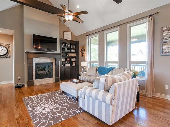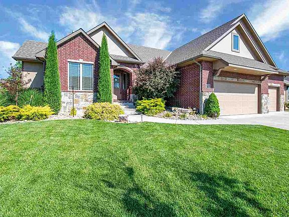 Come see this beautiful, previous model home with tons of upgrades, located in the Maize School District! This home has been meticulously maintained and has so much to offer! As soon as you walk in you're welcomed by an open floor plan and beautiful hardwood floors! The living room boasts a gas burning fireplace, wood beams and nice built-ins, and flows right into the kitchen and dining room! You'll love the granite countertops, large island, walk-in pantry, and gas stove, but donât forget to look up at the barrel ceiling! Heading into the master suite you'll find more hardwood, an en-suite bath with soaker tub, huge shower and large walk-in closet with access to the laundry room. Finishing out the main floor is a second bedroom and bathroom, but don't forget about the bonus room where you'll find a third bedroom, bathroom and walk-in closet! This is a great space for an additional master suite, mother-in-law suite, guest room, kids room, playroom or media room! Heading down to the basement you'll be greeted by the large family room with another gas fireplace, rec area, wet bar, two more bedrooms and a bathroom. Outside you'll find a beautiful yard with mature trees, large patio, fire pit, wrought iron fence, and irrigation well with sprinkler system. Not to mention the three car garage with finished sheetrock, paint and floors! This home is perfect for entertaining and enjoying time with friends/family and the location is close to New Market Square for shopping and dining, as well as highway access! Schedule your showing today!