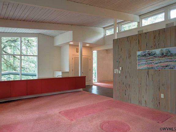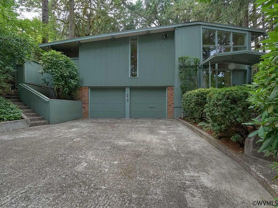 Accepted Offer with Contingencies. The lure & appeal of mid century modern welcomes you to this one owner extremely well maintained home, located in a desirable & peaceful neighborhood. Charming & authentic you will love the generous rm sizes, high wood clad ceilings & a wall of windows in the LR overlooking a private mini forest. Spacious updated kit w/ walnut cabinets & stainless appls. Main level features 3 bdrms, incl the master plus a lrg den/ofc. Lower level has 2 more potential bedrms, huge fam rm, handy shop area, wine storage room.
