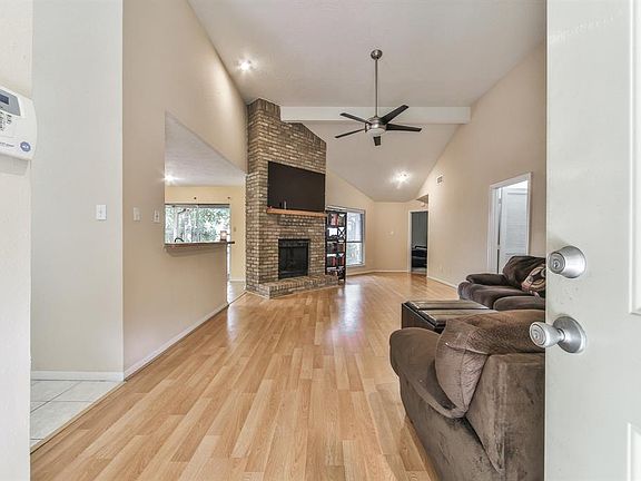 Situated in the quiet community of Timber Lane, this beautiful home features high ceilings, wood flooring, a brick fireplace in the living room, formal dining room, and a breakfast bar in the chef's kitchen. Spend a quiet evening unwinding in the private master suite, complete with a walk-in closet and dual vanities. The covered patio is perfect for entertaining guests and leisure. Community amenities include parks, sports fields, playgrounds, trails, fishing piers, and a skatepark. Located near the Grand Parkway and Hardy Toll Road, residents enjoy easy access to The Woodlands, Tomball, and Downtown Houston. Master your golf swing at the nearby Cypresswood Golf Club or enjoy a peaceful walk through the Mercer Botanic Gardens. Delve into all that Old Town Spring has to offer. Schools are zoned to Spring ISD. Call today!