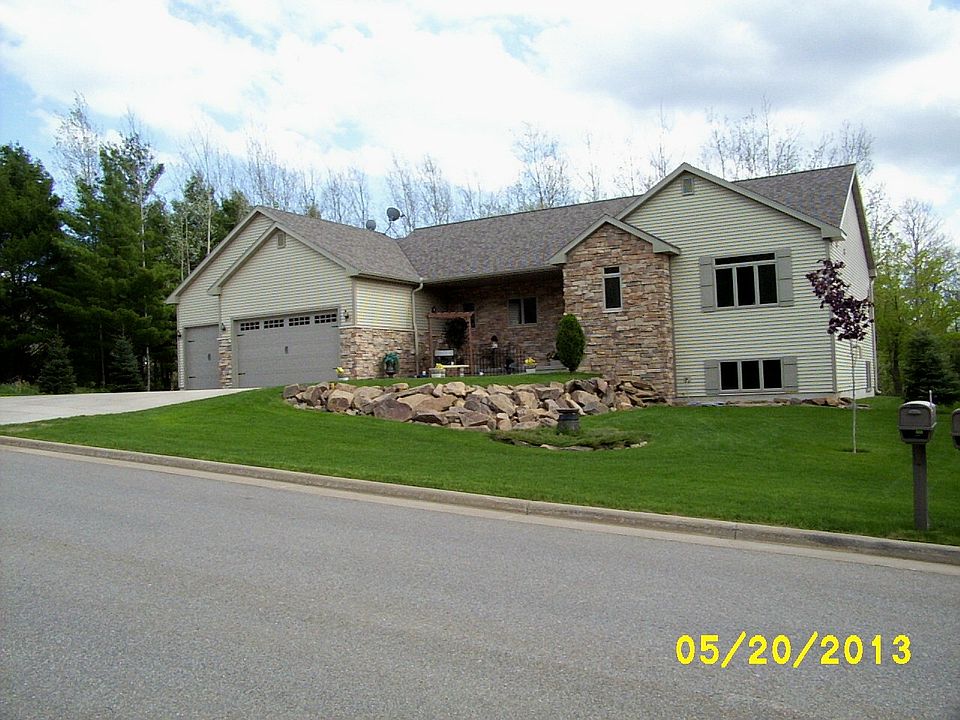 Well built and beautifully maintained, this spacious stunner rests in the beautiful Timberline Trails subdivision on Wausau's West side. This location is close to schools, the hospital, parks, dining, shopping & has easy highway access. The home rests on a beautiful sloped lot & features gorgeous landscaping, w/ a variety of trees, including fruit trees! The lot also allows for large basement windows. The front porch as well as the large deck are wonderful places to enjoy the quiet residential neighborhood!Built by a contractor for his own personal home, you already know its going to be good! But before you even step inside this masterpiece, you will be delighted to see the extra parking space for the toys (RV, boat etc) or guests, as well as the 3 car garage. This spacious garage has tons of storage space built right in, is insulated, heated...you just have to see it in person! When you enter, the 9' ceilings, the large windows letting in tons of natural light as well as the open concept floor plan create the perfect atmosphere of space and beauty. Hand scraped hardwood (white oak) flooring under your feet, and a marble gas fireplace are just the beginning of the quality finishes found throughout the home! The open-concept kitchen/dining area feature tile flooring, solid and beautiful Maple cabinetry with soft close/ quiet drawers, large walk-in pantry, island with display cabinet, stainless steel appliances (included), plenty of space for a large table and an 8' sliding glass door (to the 12x12 deck out back)that floods the area with natural light. Main floor laundry, a half bath, and closets add convenience to the space, and rounding out the main level are the 2nd bedroom with large closet, full bath with tons of beautiful storage, and the massive master suite with a dream walk-in-closet, and attached bath with great layout, his/her vanities, and great light. In the lower level, there are 2 large bedrooms with daylight windows and big closets, plus a HUGE family room! The lower level doesn't feel like a basement with all the big windows and natural light. Another beautiful full bath w/ tub and closet as well a very large unfinished room for storage finish off the level. Extra features include: Central air,cable and satellite, 200 amp service panel, custom matching garden shed, sound controlled interior walls, Low-E windows, 30 year architectural shingles, Stone and vinyl exterior, 6 panel wood doors, retaining wall (stone from the site), 100 amp service panel in the garage & wired for hot tub, covered front porch, RV parking, over 1/2 acre lot and more!! Quality is the name of this builder's game - See for yourself what quality feels like!