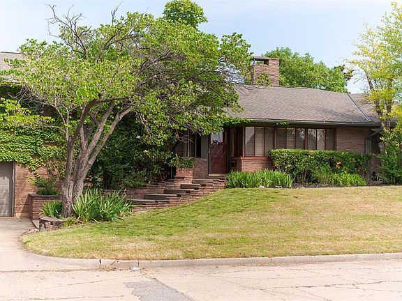 Captivating Mid Century home in sought after Venice neighborhood that sits perched atop an oversized lot and overlooks iconic Winter Dr park. The architecture of this home is breathtaking, from the unique barreled walls and woodwork to original light fixtures and builtins. Spread across three levels, the main level features an oversized living, dining and kitchen. Kitchen has been updated with solid wood cabinetry, breakfast bar, walk-in pantry and modern appliances. Upstairs you will find two large bedrooms, along with the Primary Suite. The Primary is extremely large, with two walk-in closets, one cedar closet and an ensuite that is immaculate and original to the home. Descend to the lower level and find a dedicated club room, perfect for game nights or movie marathons. A convenient space is plumbed for a future half bathroom or laundry room, adding to the functionality of this level. The oversized two-car garage provides ample parking and storage space. Throughout the home, expansive casement windows with marble sills bathe the interior in natural light and offer picturesque views of the sprawling gardens that grace over a third of an acre. Multiple outdoor living spaces extend your entertaining options, creating a seamless flow between the indoors and outdoors. This exceptional home isn't just a place to live; it's a statement piece. Designed to impress and unlike anything else found in Oklahoma City's urban core, this mid-century marvel awaits a discerning buyer who appreciates timeless style and modern convenience. NEW ROOF! Buyer and Buyer Rep to verify all info.
