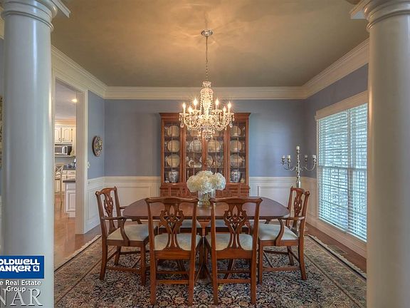 - Eat-in Kitchen, Pantry, Foyer, Gas Dryer Hookup, Heated Garage, Built-ins, Whirlpool Tub, Alarm System, Central Vacuum