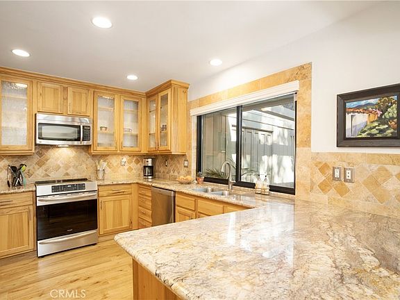 Welcome to 32155 Via Barrida in the 55+ community of San Juan Hills East. This property is one of the few detached homes in the neighborhood and has many wonderful updates. The home offers European Oak engineered hardwood floors throughout the main living areas, while the primary and secondary bedrooms have very plush carpet for a soft touch underfoot. The kitchen has been updated with granite countertops, custom glass front cabinets, an induction cooktop and all stainless steel appliances. For extra fun, the kitchen also has a built- in wine refrigerator!