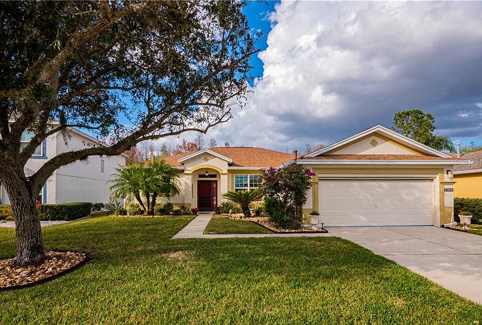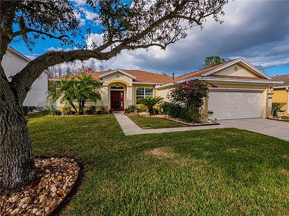 Welcome to your new home in Carillon Lakes, a stunning community with an outstanding clubhouse, beautiful facilities including tennis and basketball courts, amazing playground, large community pool, and access to fishing as well as nature trails. Cable is included in your community fees! Quickly jump on the Polk Parkway within 1/10th of a mile from the subdivision entrance making your commute quick and convenient. This home is immaculate inside and out and you can see the attention to detail around every corner. Recent updates include new roof 09/2020, new Pella double-pane energy efficient windows installed throughout, new sliding glass doors with 350 mph wind rating, new custom Dover white wood window treatments with 6" valence throughout, remote controlled Cool Breeze electric privacy screen for the garage, new garage door springs, new exterior paint, updated shaker cabinets in the laundry room, new interior and ceiling paint, updated ceiling fans installed throughout home including the lanai and garage, additional insulation installed above garage, new surge protector for the AC system and an updated UVB light air purification system installed in 2020, as well as keyless front door lock. Top of the line Balterio Optimum Crafted Oak 503 Brazilian laminate floors have been installed in all 3 bedrooms. New sprinkler heads have been installed with Greencorp lawn control is paid through 12/2021. As you approach the home, manicured tropical landscaping greets you. Stepping inside, you will love the open layout of this split plan home. The kitchen has updated recessed lighting, built-in USB port, recently installed upper and lower crown molding around cabinets, stone backsplash, built-in water conditioner, updated disposal, new stone double sink, updated appliances, and breakfast nook. The main suite has a huge walk-in closet, large ensuite bathroom including dual sink vanity and glass door stand-up shower. The guest bathroom features a tub/shower combo. Enjoy weekends relaxing on your screen enclosed lanai taking in views of the private green space to the rear. If you have been looking for an incredible home in an equally impressive community, contact us today to schedule a private tour and begin your journey to owning your next home!