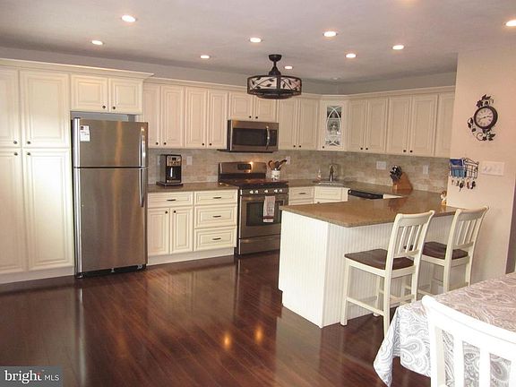 Welcome to this beautiful home in the heart of North East Philadelphia. Enter huge formal living room with neutral paint, wall to wall carpet tons of natural sunlight streaming in from the grand bow window. From there you come into a chef's dream white kitchen, a show stopper. Beautiful white wooden cabinetry wrapped around the kitchen full pantry cabinetry, gorgeous corian counters highlighting this massive space. The peninsula seats a few stools for those quick meals and on the other side of this ultra -modern kitchen is room for a full size kitchen set great for entertaining and holiday gatherings. Recessed lighting, cherry wide plank flooring, unique lighting fixture, gas range, deep sink, dishwasher it has it all. Everyone will want to be the chef in this kitchen. A modern half bath completes this main level. Upstairs you have a wonderful Master retreat in this massive space fitting most furniture just perfectly with a little sitting area, Walk in closets, and who wouldn't want a private little get ready for the world area tucked away just for that special someone. There are two more nice size bedrooms on this level that share a beautiful ceramic tiled bathroom tall vanity, vibrant grey tones that are just spa like. There is more! The lower level is a fully finished basement with separate laundry room and inside access to the over-sized garage. Fits a full size car and still tons of space for storage. The back yard is fenced with a patio area and a small section for a garden. This home is meticulously maintained with replacement windows, new roof (2019) and so much more. Make your appointment today!