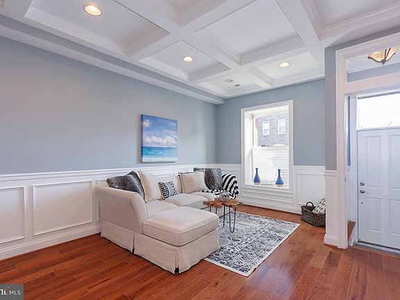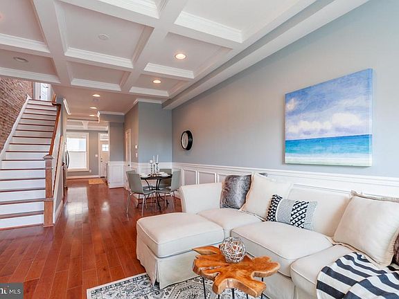 BEAUTIFULLY DESIGNED TAX CREDIT RENOVATION WITH ROOFTOP DECK & OFF STREET PARKING! Open floor plan featuring hardwood floors throughout the upper levels, spacious living room w/ coffered ceiling, wainscoting, & exposed brick, main level half bath, designer kitchen w/ ss appliances, upgraded counters, backsplash, & pot filler, 2nd level Master suite w/ full bath & 2nd bedroom w/ hall bath, finished basement w/ sitting room, 3rd bedroom, & 3rd full bath, 2 tiered rooftop deck with incredible views & off street parking! 10 YEAR TAX CREDIT & ELIGIBLE FOR 10K VACANTS TO VALUE GRANT = SAVE THOUSANDS!