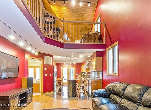 AMAZING home on the Fox River. Year round living or a weekend get away. Double lot just under an acre totaling 151' of water frontage. New construction in 2002. State of the art professional grade chef kitchen. Granite counters and flooring with stainless steel appliances DCS stove, Miele dishwasher. First floor master suite with private bath with granite rain shower and Jacuzzi tub. Cathedral ceilings with skylights in the spacious 26x23 loft with an additional half bath. Three car extended garage for all the necessary toys to live on the river. This home looks small from the outside, but so much character and space under this roof!! West view of open space and sunsets.