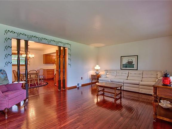 A sparkling clean and meticulously maintained ranch home with a fantastic lot backing to woods!! Gleaming hardwood floors, spacious eat in kitchen with hard surface countertops and Kitchen Aid appliances, large living room with gas fireplace, HUGE partially finished lower level with full bath, game room space, and a storage/workshop room. Relax on the back patio and enjoy a large, useable yard with shed. Concrete driveway, epoxy floor in garage, Bosch tankless hot water heater, Bath Fitter shower, and Thermo Twin windows are just a few highlights of this wonderful home just waiting for your finishing touches!!
