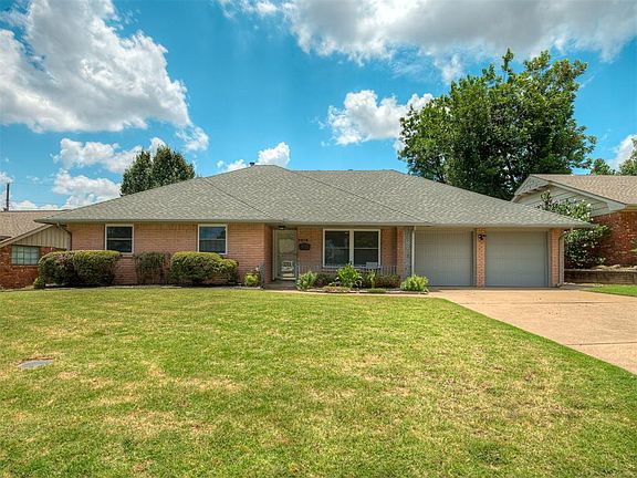 Imagine a home right in the heart of all the action. You have easy access to the shopping, dining, & entertainment of NW Expressway, Penn Square, OAK entertainment district, & more. Combine that with the luxury of having Lake Hefner & outdoor activities in your backyard. Upon arrival you will be in awe of this home's picturesque curb appeal. From the entry, step into the sitting room, which could also be a formal dining room & is the perfect space for entertaining. The vintage parquet flooring is in pristine condition & flows into the main living room that sits comfortably around the fireplace which has intricate built-ins on both sides. Windows have been updated & let in an abundance of natural light. In addition, the fresh paint & updated light fixtures brighten the interior of the home. The chef's kitchen has been updated with oversized tile floors, granite countertops, stainless steel appliances, & an ample amount of painted white cabinetry. The kitchen nook is the perfect space for homework or for working from home & the well-situated bar opens the kitchen to the living room. Dining area is conveniently close to the kitchen. Continue your tour to the spacious 4 bedrooms that have updated wood flooring & large closets. The secondary bedrooms share a guest bathroom that has been completely remodeled with granite countertops & a tiled shower with a bathtub. A hallway that leads to the primary bedroom has ample amounts of cabinetry for storage. In the rear of the home is the very large primary bedroom & completely updated primary bathroom that offers granite countertops & a beautifully redone tiled walk-in shower. Finish your visit by stepping through the sliding glass doors to the large backyard & patio that has a view of Founders Tower. Backyard is an incredible size & the perfect outdoor living space for family, pets, & entertaining. All of this & a storm shelter in the garage & new water tank 2024. This home is move in ready & has a perfect location!