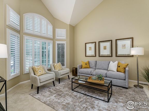 Rarely offered Palisade model. Original owners have taken meticulous care of this gently lived in home. Beautifully landscaped front yard with flagstone path leads to welcoming porch. Elegant two-story entry way features curved stairway and gleaming hardwood floors. Spacious office has built in bookshelves and adjoining 3/4 bath. Step down into the large family room with built ins and ample wall space plus gas fireplace. Huge kitchen features eating area, island, stainless appliances with double ovens and walk-in pantry. Formal living and dining rooms have bay windows. Upper level has luxurious primary suite with gas fireplace, glass shelves, 5-piece bath and walkin closet. Two secondary bedrooms connected by jack and jill bath. Fourth bedroom has ensuite bath. Spacious basement is ready for your custom finish. Updated mechanicals. Large picture windows with plantation shutters throughout home welcome tons of natural light. Home backs to desirable Superior Wildflower Park. An easy walk to Eldorado K-8. This home is spotless and move in ready.