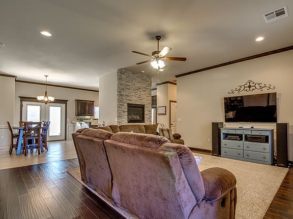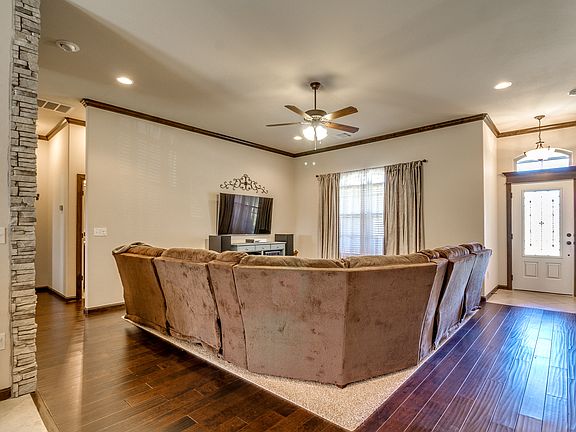 You don't want to miss out on this fabulous home in Summit Valley! This is a 3 or 4 bedroom stunner, depending on your needs, with an opt bedroom/study. The open concept design flows beautifully for all main areas while bedrooms remain secluded in this split floor plan with master bed on one side and others opposite. This home is not standard builder's grade! 3 cm granite, stainless steel appliances, glazed wainscoting in dining to match accents in kitchen. This gorgeous home leaves nothing to desire! Large master bedroom with en suite master bath and huge closet! Master bath bolsters double vanities, jetted tub and walk-in shower. Centrally located powder bath keeps your guests out of the kid's bath! Decide where to enjoy your evenings, front porch with porch swing, or back patio overlooking the glistening pond! Feel secure with the ext. mounted camera system. Location has easy access to Highway 9, just minutes from I-35! Don't miss this perfect opportunity to make this your new home! See the Virtual tour here: http://tours.flow.photos/patrick-boggs/3216-wood-valley-road