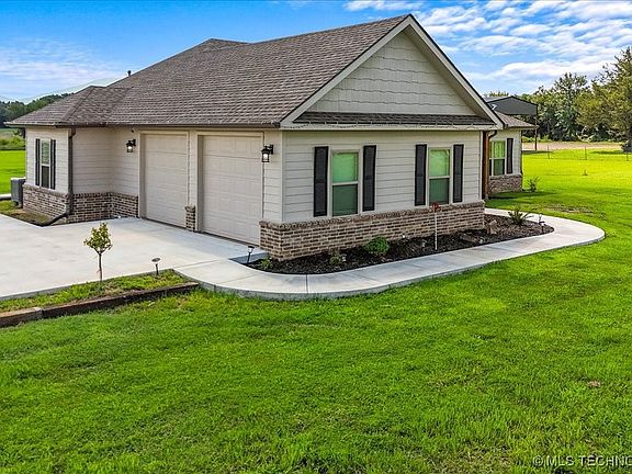 COUNTRY LIVING ... Discover the perfect blend of comfort and country living in this newer three-bedroom, two-bathroom brick sitting on a spacious 2.55 acres with breathtaking views. The home boasts a modern open floor plan perfect for comfortable living. Step into the heart of the home, where you'll find a spacious living area seamlessly flowing into a stylish kitchen featuring stainless steel appliances that make cooking a delight. The master bedroom is a true retreat, complete with a generous walk-in closet and a luxurious en suite bathroom. Here, you can unwind in the walk-in shower or enjoy the double vanity with granite countertops. Outside, the front porch offers stunning views of Cavanal Hill with beautiful sunsets, while the back porch overlooks Sugarloaf Mountain, creating a serene backdrop for your gatherings. The extended patio is perfect for entertaining family and friends, making it an ideal space for barbecues or simply relaxing in the fresh air. This property also includes a spacious 1200 square-foot shop with a 30 x 9 lean to, perfect for hobbies or extra storage. Nestled on 2.55 acres, you'll find a variety of trees, including two peach trees that add to the beauty of the landscape. Conveniently located to schools, shopping, and medical facilities in Poteau, Oklahoma, this home offers both tranquility and accessibility. Plus, you’re only 30 minutes away from Fort Smith Regional Airport, which provides direct flights to Dallas-Fort Worth International Airport. Don’t miss your chance to make this wonderful property your own!
