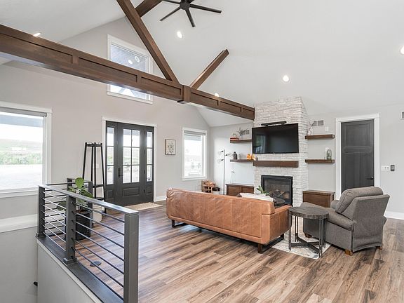 Your dream acreage is finally for sale! This beautiful home, built in 2021, offers a rare opportunity to own a gorgeous piece of Iowa land with a nearly brand new house. This walkout ranch sits on 4 plush acres and is everything you could ever ask for and more. As you drive up, you will fall in love with the absolutely gorgeous setting of this acreage. Inside, you'll find huge vaulted ceilings with amazing wood beams that make the open floor plan feel even larger. The main floor features a kitchen with stunning quartz countertops, high-end appliances, a massive pantry, and a primary bedroom with a dream bathroom. There's so much more to see that you will have to visit to appreciate every feature.The sliding glass door leads to a deck with an unbeatable view. The large deck also includes a screened-in portion, perfect for enjoying the outdoors without dealing with bugs. Downstairs, the open floor plan continues with a huge living area, two large bedrooms, and an additional full bathroom. The walkout basement allows for plenty of natural light, making the downstairs living area extra enjoyable. If you need garage space, this home is perfect for you! It features an oversized three-car garage that is heated and equipped with floor drains, making it perfect for all your needs. If you have a furry friend, they can use the doggy doors to access a fully fenced area outside. Additionally, there is a prepped spot on the property for an outbuilding, allowing you to add your final touch. 32165 Puckerbrush Road offers a rare opportunity to own an acreage of this quality with a complete country setting, while only being fifteen minutes away from Jordan Creek Mall in West Des Moines. Come take a look and experience the best living Iowa has to offer!