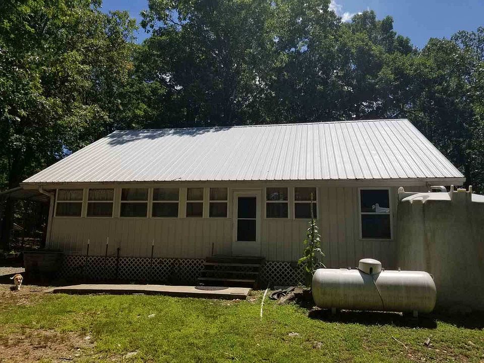 NEWER HOMESTEAD STYLE HOME ON 12 ACRES IN THE COUNTRY!! This 2-3br/1ba home was built in 2009 and sits on 12 acres. Built as an off the grid homestead style home, the features include a split conventional/solar electric system, a detached food cellar, a detached garage with utility room and a half bathroom, lots of fruit trees, a garden area, several outbuildings, and a beautiful timbered setting. Great hunting and rural water is available in addition to the well.