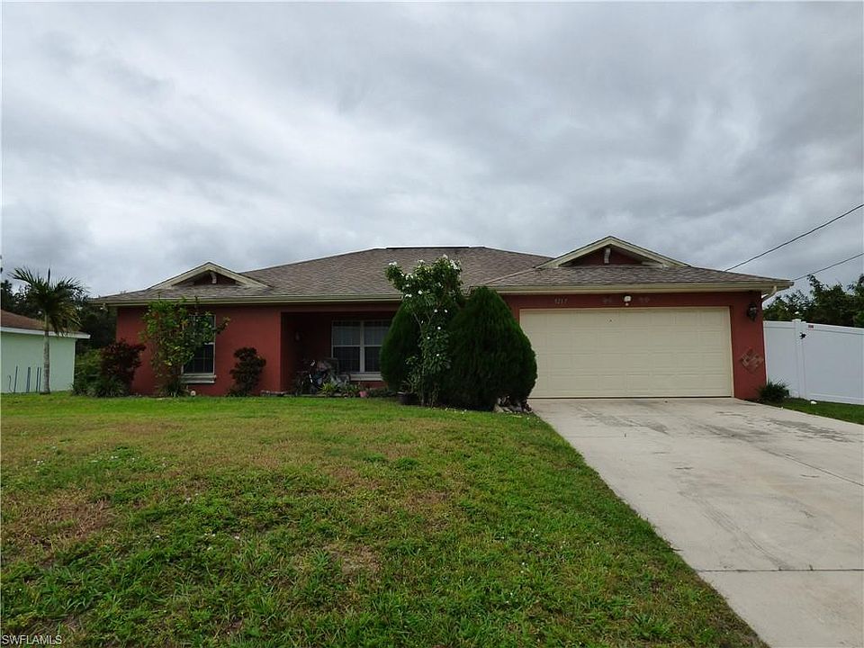 3 bedroom 2 bath with double garage located in West Lehigh, just minutes to I-75 and Ft Myers, white PVC fence surrounds the backyard for privacy, covered front porch plus a 25 X 10 screened lanai overlooking the backyard, new central heat and air in 2019, new water heater in 2017, ceramic tile floors throughout the entire home, cathedral ceilings, plant shelves, kitchen and bathrooms have been remodeled, glass tile backsplash, breakfast bar and pantry in kitchen, indoor laundry room, large master bedroom with walk in closet and private bathroom, built in desk in large hallway in between the guest bedrooms.
