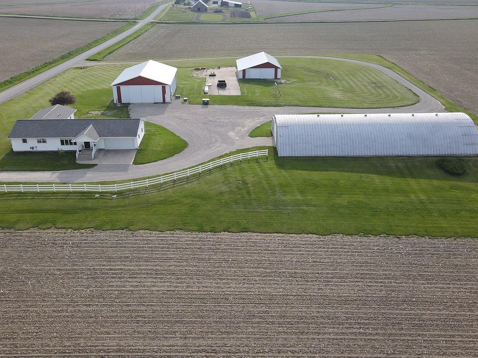 WONDERFUL ACREAGE WITH UPDATED THROUGHOUT RANCH OFFERING 2020 SQ. FT FINISHED ON MAIN FLOOR, OUTBUILDINGS, UNION SCHOOLS ALL ON 3.88 ACRES. WILL START WITH THE RANCH. Enter the home with a covered front porch, front door entrance to a large living room with hard wood floors, recessed lights and fan plus large bay window for extra natural lighting, and a nice coat closet. Large dining area with new built in lighted hutch and sliding door overlooking large patio. The dining area and kitchen have an open floor plan with a breakfast bar with stools , a great kitchen with hard surface countertops, stainless appliances including double ovens, dishwasher, large hood over smooth cook top, white cabinets with soft close drawers. There is a full bath with walk in shower . There is beautiful Shaw flooring throughout kitchen, dining area hallway, bath , laundry room, and guest bath and master bedroom has carpeting. The master bath offers beautiful cabinetry, double sinks, walk in shower and large linen closet. Nice laundry room including both washer and dryer. The large master bedroom has a vaulted ceiling and a large walk in closet. There are also 3 additional bedrooms with large closets and built ins and all have hardwood floors. The basement is unfinished and open space to finish as you like, there is an egress window. Included in the basement is large safe, Fridg / with freezer and stand alone freezer. There is an attached large double garage (644 sq ft).This home offers many updates in 2018, addition of master bedroom, master bath and laundry room, complete remodel on main floor , windows, plumbing, furnace, and wiring. Exterior also with new covered front entry porch, patio , siding and more. Outbuildings include large Spahn and Rose Steel Utility Building 46 x 64 x 14 (2944 sq ft.) all cemented. There is a Quaonset Building 50 x 120 x16 (6000 sq ft) plus an additional building for storage, with a circle drive around property making everything accessible for entry and exit.There is also a whole acreage generator. Must see THIS WELL KEPT ACREAGE!!!!!!