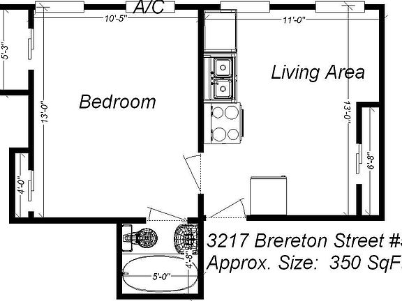 - Total interior livable area: 350 sqft