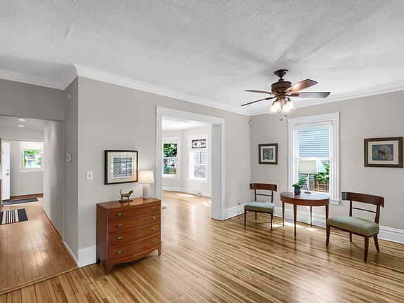 You have to see this home! Gorgeous, remodeled , move in ready ! Two charming 3 season porches, 5 bedrooms- primary bedroom with fireplace and tree top deck. Three beautifully remodeled baths rooms- 2 have walk in showers. Open flowing first floor -living room, dining room- kitchen hardwood floors - high ceilings, 1st floor 3/4 bath, mud room off back entrance. Awesome fenced backyard. Huge deck perfect for entertaining. You'll love the oversized 2 car garage- with guest parking area. Newer windows . New roof 2024 - Coming soon - NEW SIDING!
