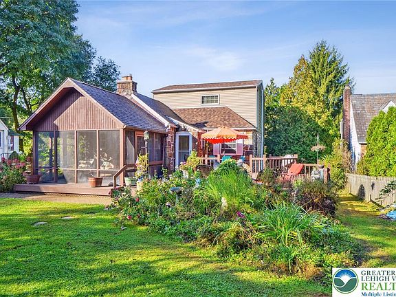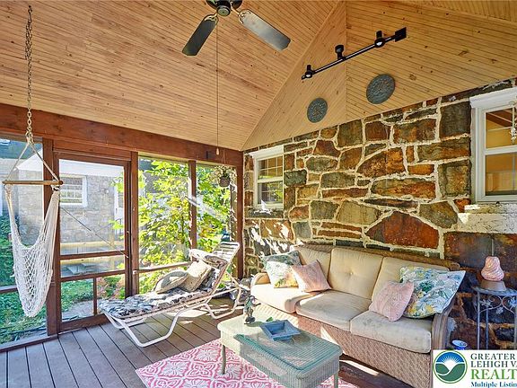 Welcome to this craftsman stone cottage situated on a serene park-like lot. The living room area features a wood beam cathedral ceiling, impressive stone fireplace, built-in cabinets and plenty of natural light. Adjacent to the living area is the kitchen and dining area as well as a side door entrance. The main floor also includes two bedrooms and a full bathroom. An elegant wood staircase leads to a dutch door and entry to the primary bedroom. Characteristics of the spacious primary bedroom include a high ceiling, built-in bench, walk-in closet and a half bedroom. Wood floors throughout the home. This description would not be complete without mentioning the screened in porch, wood deck and fenced backyard. A nature's lovers dream! This home also features a clean basement with direct access to a one-car garage. Ample outdoor parking space as well. Come see this one of a kind Bethlehem beauty! New roof installed 04/2023. Roof warranty transferrable to new owner.