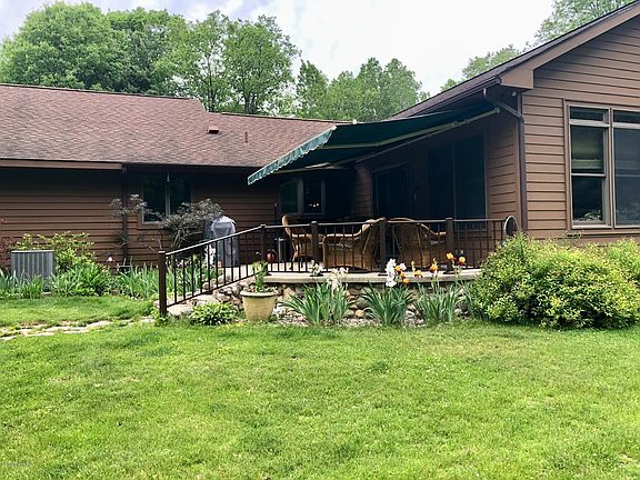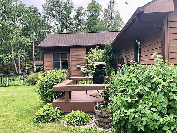 Location combined with privacy & quality makes this the perfect Up North Ranch Home. Cedar sided 3 Bedroom, 2 Bath home has been maintained & updated since it was built in 1989. 10 years ago a large Family Room was added off the Kitchen with a cement patio which has a retractable awning. The Master Bedroom has it's own office/den with a deck set up for a hot tub. Open Floor plan from Kitchen, Dining, Living to Family Room makes this the perfect entertaining home. Basement has a bedroom with an Egress window. To top off the beautiful home it has a 2 stall garage, 2 Pole Barns, fenced in yard & garden. The home is accessed from a private drive shared with the neighbor. Brand new boiler & 60 year roof confirms home is ready to live in for a long time. Huge Price Drop! Call for a showing. #ManisteethePlacetoBe #JustaskGini