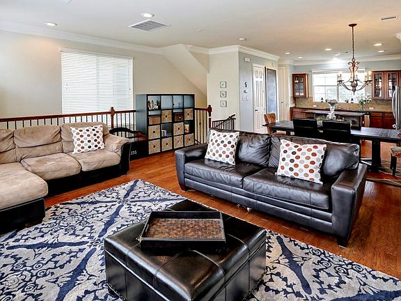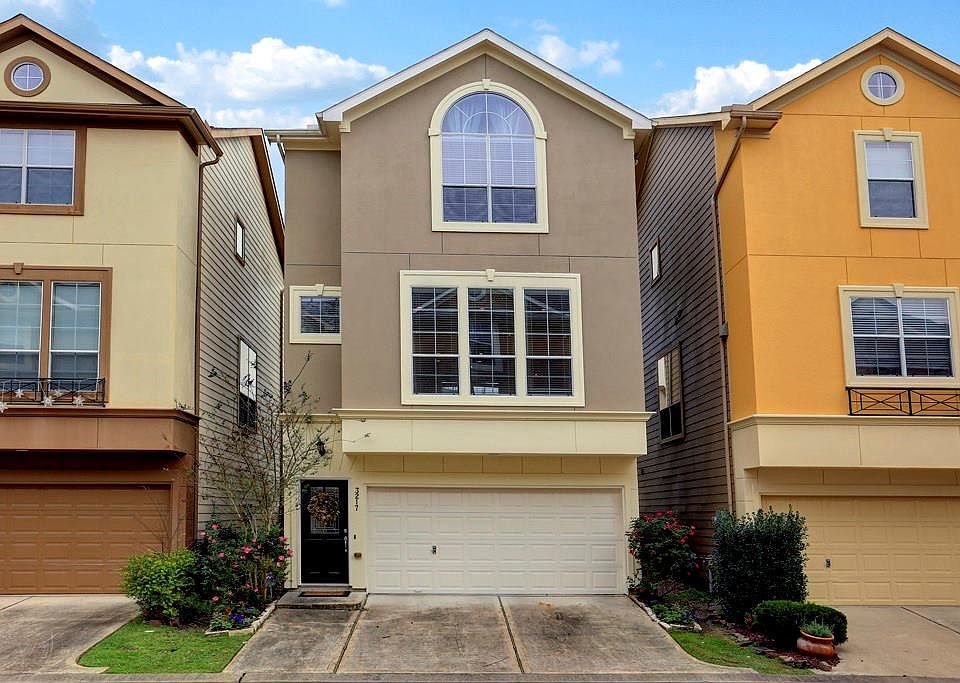 Quaint and pleasant home near the Medical Center. This home sits high and dry on a ridge and has never flooded! The first floor also includes the study/flex room and a charming backyard patio retreat. The second floor is inviting with a large family room that seamlessly blends into the dining room area and kitchen. The kitchen features plenty of cabinets that can easily hold your appliances and dishware as well as an over-sized island. The third floor includes the master suite with vaulted ceilings and over-sized windows. The master bathroom features a separate shower and tub, dual sinks, and a generous closet. Right in between the master bedroom and the secondary bedroom is the conveniently located utility room with washer and dryer. The secondary bedroom is well-suited to whatever your needs would be. This home is in a gated community with easy access to the Galleria and very close the Med Center. Washer, dryer and fridge included!