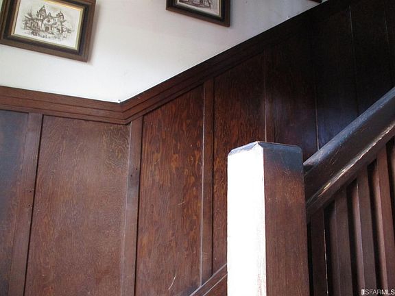 Fixer-Upper special! This mansion-like grand home is truly a diamond-in-the-rough. Originally built circa 1902, this home, per record on file, offers 2,814 sq. ft. of living space sits on a 6,150 sq. ft. lot. The first level has a great room, library, a half bath, fireplace,laundry room, storage room, family room, and a large utility room. Backyard features mature trees and two tool sheds. On the second level you will find a majestic living room w/fireplace, built-ins, dining room w/deck, food preparation room, kitchen, pantry room, a free-standing stove, cooler, a water closet, and a huge breakfast room opening to a view deck. The wood beam and ornate tin-ceiling designs and the wainscoting are sights to behold. The top level has 3 bedrooms, 2 baths, 1 fireplace, 1 free-standing stove, a standing-room attic, plus a large living room opening to a view deck w/views of SF skyscrapers. The detached garage can park 2 cars in tandem.