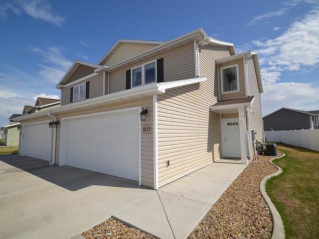 Want move-in-ready? Look no further! This 2-story twin home has 3 beds & 3 bath. Inside you'll find large windows with natural daylight flowing in. The open floor plan flows the living room into the dining room & kitchen featuring beautiful laminate flooring, under-mount sinks, quartz counters & maple cabinets. Access your 10x24 patio right from the dining room. The main floor also boasts a 1/2 bath & a laundry room with cabinets. Upstairs you'll find 3 bedrooms, including a large master bedroom with private 3/4 bath w/dual sink vanity & window to let in natural light & huge walk-in closet. The other 2 bedrooms also offer walk-in closets. And you'll find a full bath. The 2-car garage is finished with H/C water, drain & heater. This home offers easy access to University of Mary, shopping, restaurants, banking, & walking trails. 3215 is also for sale, offering a rare opportunity to own both sides: rent out one & live in the other! Contact a realtor today for a private showing.