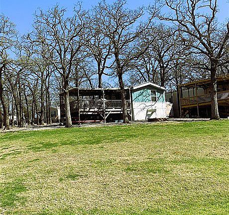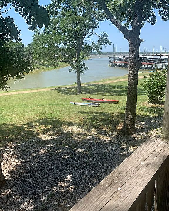 Take a look at this stunning vacation retreat available for sale at Flowing Wells Resort & Marina! This lakefront gem offers breathtaking views of Lake Texoma from its spacious deck. What a unique opportunity to own a low-maintenance, vacation lakefront property in the serene Flowing Wells area, known for its excellent fishing, scenic trails, stunning sunsets, and a wide range of outdoor activities. If you find this intriguing, kindly reach out to Flowing Wells office at 903-786-2930 or see more info and pics at https://www.flowingwellsresort.com/vacation-home-sales/Lot-18-For-Sale. Here's what makes it such a rare find: 2 bedrooms and 2 bathrooms on an oversized lot with an open floorplan. -The exterior features a spacious tree-covered courtyard area, two fire pits (one overlooking the lake and another in the courtyard), and convenient storage space under the deck for all your lake toys. -There's a generously sized, well-maintained grassy area in the front, perfect for outdoor sports and games. -The property comes fully furnished, both indoors and outdoors. -One of the bedrooms is currently set up as a bunk room with four twin beds, while the other boasts a comfortable king-sized bed. -The living room seamlessly connects to the kitchen and includes two full-size solid-wood futons. -For added convenience, there's a dedicated laundry room with a washer and dryer. -The plumbing has been recently updated with flexible PEX material, and a new water heater has been installed. -As a bonus, the property includes a handy EZ-Go golf cart. -The deck is equipped with a dining table, wicker patio seating, and a Weber grill, making it the perfect spot to enjoy the outdoors.