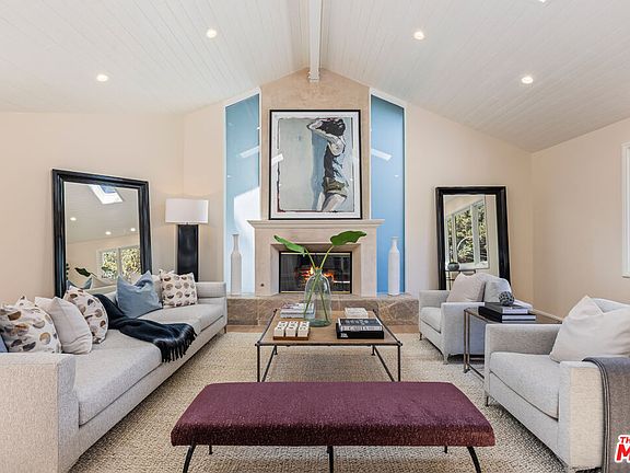 This newly and thoughtfully renovated 4-bedroom, 3-bathroom home in the heart of Sherman Oaks presents a contemporary, turnkey home ready for move-in. As you approach, the driveway leads you to the grand entrance, adorned with outdoor lantern sconces that set the tone for what awaits inside. Upon entering, you're greeted by soaring ceilings and radiant white oak hardwood floors, creating a bright and airy ambiance throughout the open floor plan. The living area, exemplary of expert spatial design, boasts skylights, controllable recessed lighting, and a cozy fireplace, all seamlessly connected to the backyard. The dining area features another fireplace and flows effortlessly into the chef's kitchen, complete with stainless steel Thermador appliances, an island for added countertop space, custom cabinetry, and a charming kitchen garden window. The first floor also offers an office and a convenient laundry room equipped with LG washer and dryer. Upstairs, the primary bedroom is a sanctuary of comfort, featuring a spa-like ensuite with a stand-in shower, soaking tub, and a custom vanity area. The expansive walk-in closet offers ample storage space and even room for seating. Outside, the backyard is a private retreat featuring a built-in Viking grill and a covered veranda, perfect for hosting gatherings with friends and family. Located South of the Boulevard and positioned at the top of the hill, this home enjoys a prime location on a tranquil street, yet just moments away from Ventura Blvd's bustling dining, shopping, and entertainment options.