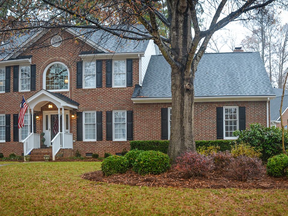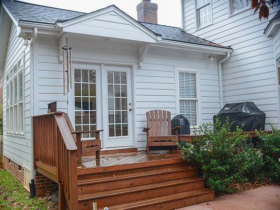 Traditional style home in Durant Trails in N Raleigh with easy access to 540. Quiet neighborhood offers a clubhouse, tennis courts, pool and greenway walking trail. Added deck, sunroom, and patio. Plantation shutters in master bathroom, living room and den. California closet in master bedroom. Added covered front porch.