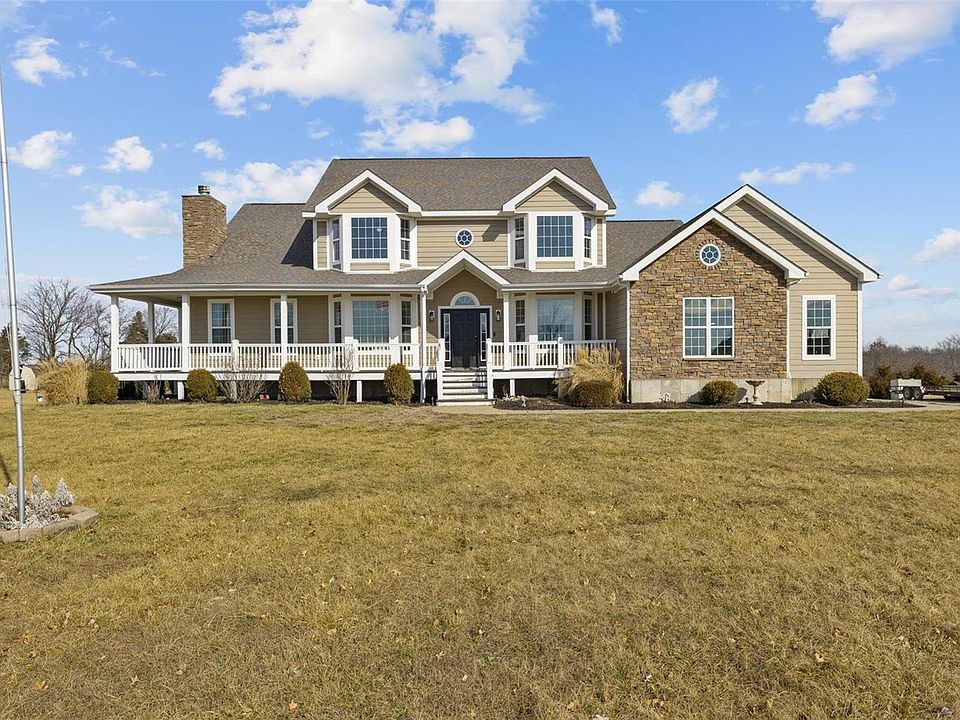 This incredible property sits on a sprawling 5-acre lot, offering space, luxury, and privacy with countless upgrades inside and out.The exterior is packed with features, including a newly expanded driveway, custom retaining walls, and a 40x80 shop with a 6-car garage. The outdoor living space is a true oasis with a 40x20 saltwater heated pool, surrounded by 1,600 sq. ft. of pool deck and patio, professional landscaping, custom flagstone retaining wall, and landscape lighting throughout create a serene retreat. Inside, features newer flooring and painting throughout. The kitchen boasts plenty of cabinets and counter space . The primary suite is a luxurious retreat with fireplace. The living room features a striking floor-to-ceiling shiplap fireplace surround with marble detailing and beautiful windows throughout.The finished basement is an entertainer’s dream, offering a custom gym, a bar/game room, and two large storage rooms, safe room and full bathroom. Geo thermal heating & cooling!