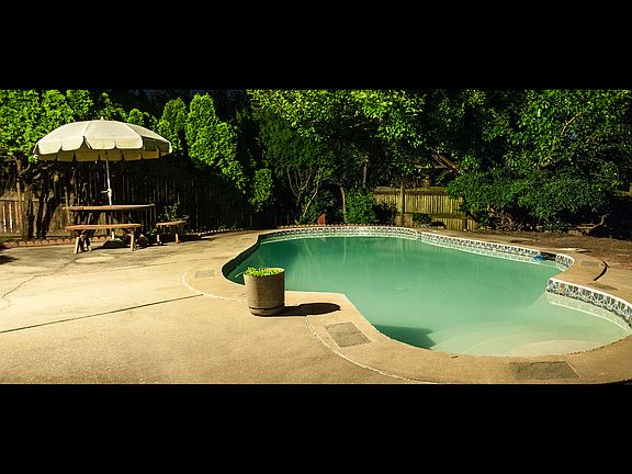 This brick cape cod features two main level bedrooms and an in-ground pool. Enter on the open living room with a wood-burning fireplace, which flows into the separate dining room. The eat-in kitchen has tile flooring and an exit to the balcony overlooking the pool. Two bedrooms and a full bath are also located on the main level. The upper level is a large carpeted room with a bar, which can be used as a third bedroom. A home office or recreation room is located on the lower level, along with a half bath, large utility room with plenty of storage space, and exit to the back yard. The back yard is fully fenced and has an in-ground pool.