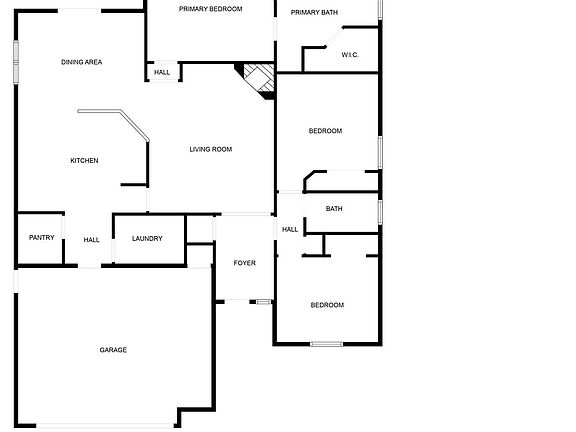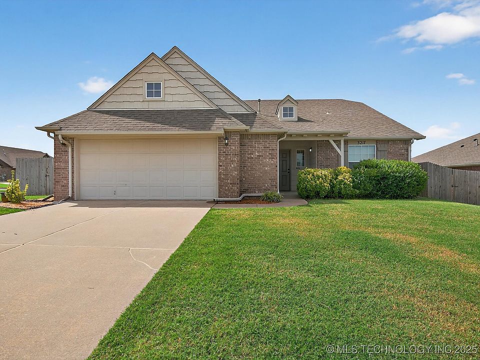 Step inside this beautifully designed home featuring an open floor plan with vaulted ceilings that frame the fireplace. Spacious primary suite boasts a spa-like bath complete with a separate shower, relaxing garden tub, dual vanities, and two walk-in closets. Primary bath has fresh paint. Split bedroom plan with two additional bedrooms that share a hall bath.
