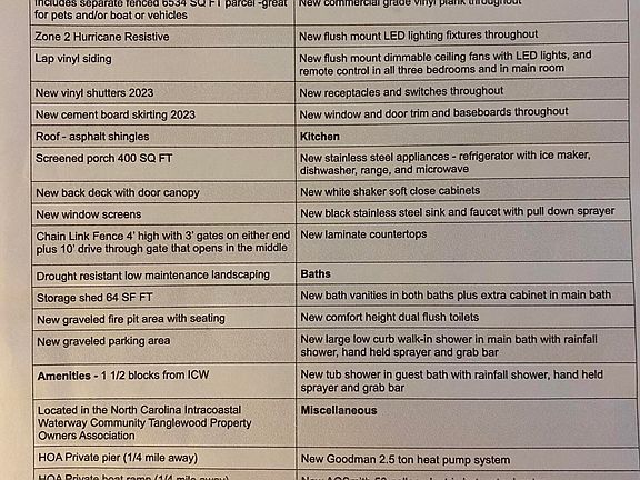 Don't miss this adorable, completely renovated home. First you are greeted by the gravel driveway and cozy firepit, then enter the huge screened porch. But be ready to be wow'd by the sparkling interior. There is all new flooring and paint, with a gorgeous, white kitchen, and stunning 2 new bathrooms. And all of this is located in a terrific community located on the water, with community shared boat ramp, pier, sun deck, floating dock, covered picnic area,