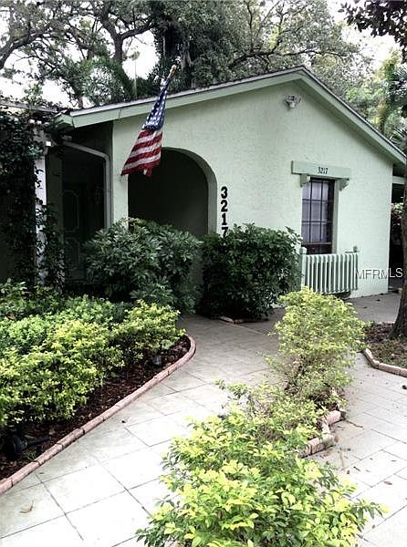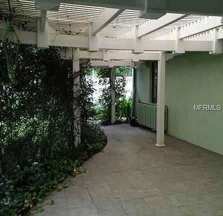 Nestled amid lush tropical landscaping this cozy, well maintained home has a spacious great room with vaulted ceiling, parquet flooring and a wood burning fireplace with French doors on either side, opening to the ceramic tiled Florida room. Florida room opens on each side to decked patios with beautiful plants and trees. The modern kitchen, looking out onto front patio and garden, has lots of cabinets and breakfast bar looking into the great room. The parquet flooring continues throughout the two bedrooms. Master bedroom has sliding glass doors to covered patio and garden and a walk in closet. The master bath has a sky light and an adjoining half bath that is easily accessible from the living area. The garage has been enclosed to make a storage room lined with cabinets and shelving ( could be made into a third bedroom or back into a garage). The home is surrounded by several decks, both covered and open; with built-in benches and storage, all with mature oaks and tropical planting providing much privacy.