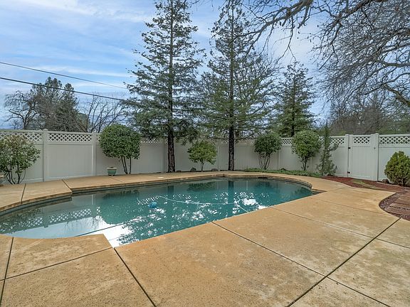 Welcome to Woodbury Estates! Large flag lot on almost 1 whole acre. Comfortable home with split bedroom floor plan and a beautiful pebble tech pool. Secluded and set back off the road on a private drive with massive RV parking. Just a quick walk to Sun Oaks Tennis & Fitness Club. Beautiful Custom kitchen with double oven and plenty of cabinets and storage. Master Suite has a beautiful walk in shower and separate jetted tub and huge walk-in closet. Massive covered rear patio looking out over the wooded backyard. Indoor laundry with storage leading into the the 3 car garage with even more storage. 2 outdoor sheds and a fenced dog run. Wimbledon Estates is one of the most custom and convenient locations in Redding.
