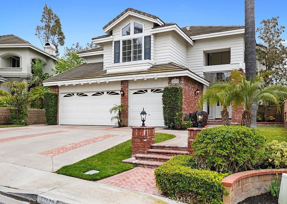 This spacious 4-bedroom, 2.5-bath home offers 3,094 sq. ft. of beautifully designed living space, including a versatile bonus loft. The popular open-concept floorplan is light and bright, featuring tasteful upgrades throughout. Highlights include hardwood and travertine floors, newer carpeting, newer windows, custom paint, crown molding, ceiling fans, and plantation shutters. The expansive kitchen boasts a center island, granite countertops, stainless steel appliances, walk-in pantry, and a premium sink. The luxurious primary suite offers a romantic fireplace, a private recently renovated deck accessed through newer French doors, and ample space for relaxation. The family room flows seamlessly into the kitchen and shares a dual-sided fireplace with the large living room. The primary, secondary bathrooms and the downstairs powder room have been beautifully remodeled with granite countertops and high-end fixtures. Additional features include dual staircases for easy access to the formal living area and the casual family room (currently setup as a dinning room) and kitchen, French doors connecting key living areas, a large indoor laundry room, and elegant leaded glass entry doors. Enjoy low-maintenance landscaping artificial turf in the backyard. A spacious three-car garage with epoxy flooring completes the package. All located within a fantastic gate-guarded community offering pool, spa, tennis/pickleball, Volleyball and sports courts. It is conveniently located within walking distance to shopping centers and RSM Lake and is part of the award-winning Saddleback Valley Unified School District! Come see it for yourself.
